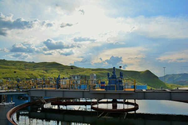 2016年10月12日,中国黄金集团公司刚果(布)索瑞米项目建成投产。10月5日,刚果(布)历史上生产的第一块铜板已经在这里下线。图为索瑞米项目选冶厂。